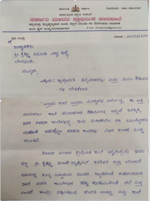 Sri Krishna Group of Educational Institutions Social Initiative Adoption of Government Schools Partnered with the Government of Karnataka on 24/11/2020